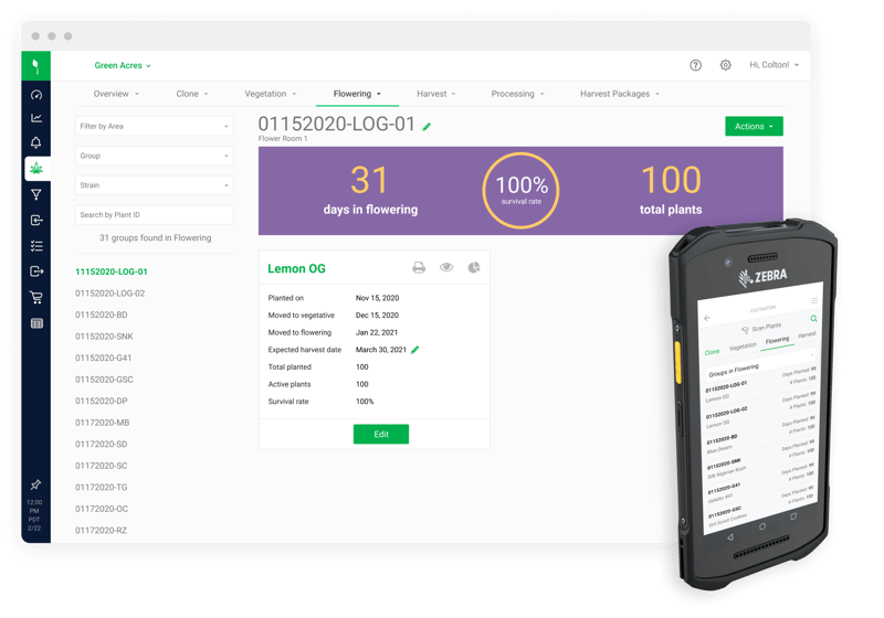 Flourish's cultivation management technology offers a centralized hub for plant lifecycle tracking and efficient information management, along with data models for insightful reporting and analysis, allowing you to make informed decisions, forecast harvest projections, and boost profitability.